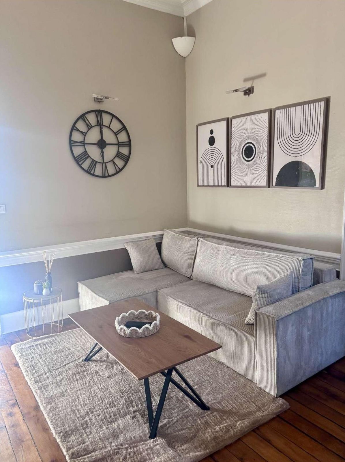 > een gezellige woonkamer met slaapbank,