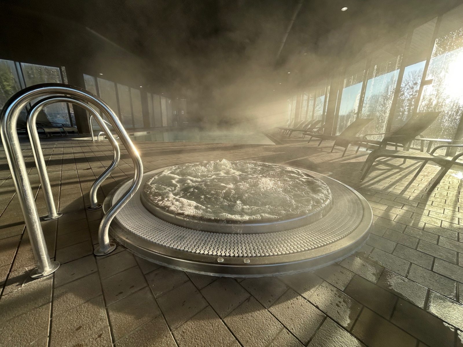 Ontspan na een drukke dag in onze wellnessruimte met verwarmd binnenzwembad, sauna, jacuzzi, fitnessruimte en solarium. We bieden ook massages tegen betaling, alleen op afspraak.