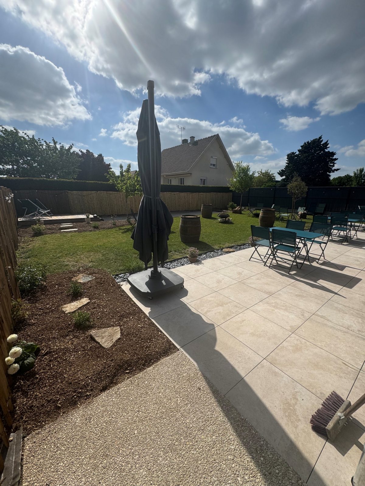 > Groot terras in travertijn (60m2)
